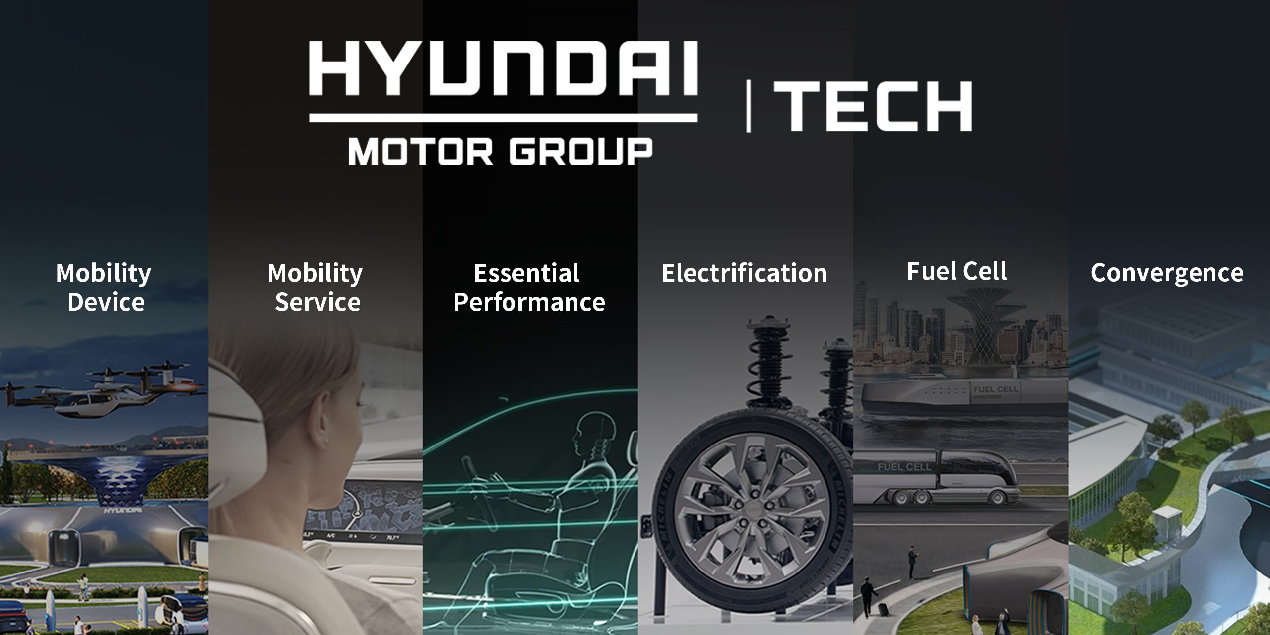 São várias as secções de informação disponíveis, reunindo uma visão detalhada da tecnologia que o grupo pretende desenvolver e implementar nas suas futuras soluções de mobilidade. As seis secções do Hyundai Motor Group Tech – Mobility Device, Mobility Service, Essential Performance, Electrification, Fuel Cell e Convergence – estão subdividas em 25 categorias.
