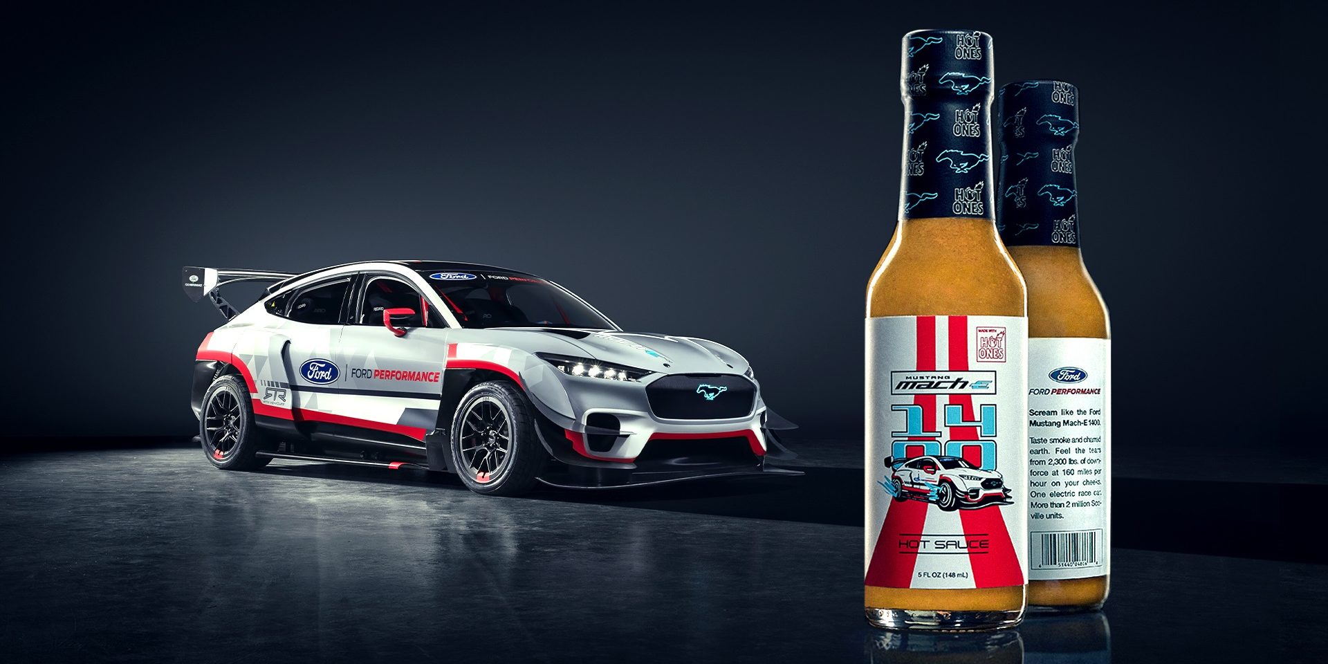 Aproveitando o popular show televisivo norte-americano “Hot Sauce”, que assenta em entrevistas a diferentes convidados, feitas à mesa, frente aos mais variados pratos carregados de picantes oriundos de todo o planeta, a Ford desenvolveu o “Mustang Mach-E 1400 Hot Sauce”, molho que se destina a transmitir as sensações proporcionadas pelo ultra-potente e – até há bem pouco tempo – impensável SUV eléctrico da marca norte-americana, viatura protótipo de competição equipada com nada menos do que 7 motores eléctricos que, no seu conjunto, debitam 1.400 cavalos e destroem pneus à mesma velocidade que se come um franguinho da guia ao piri-piri!