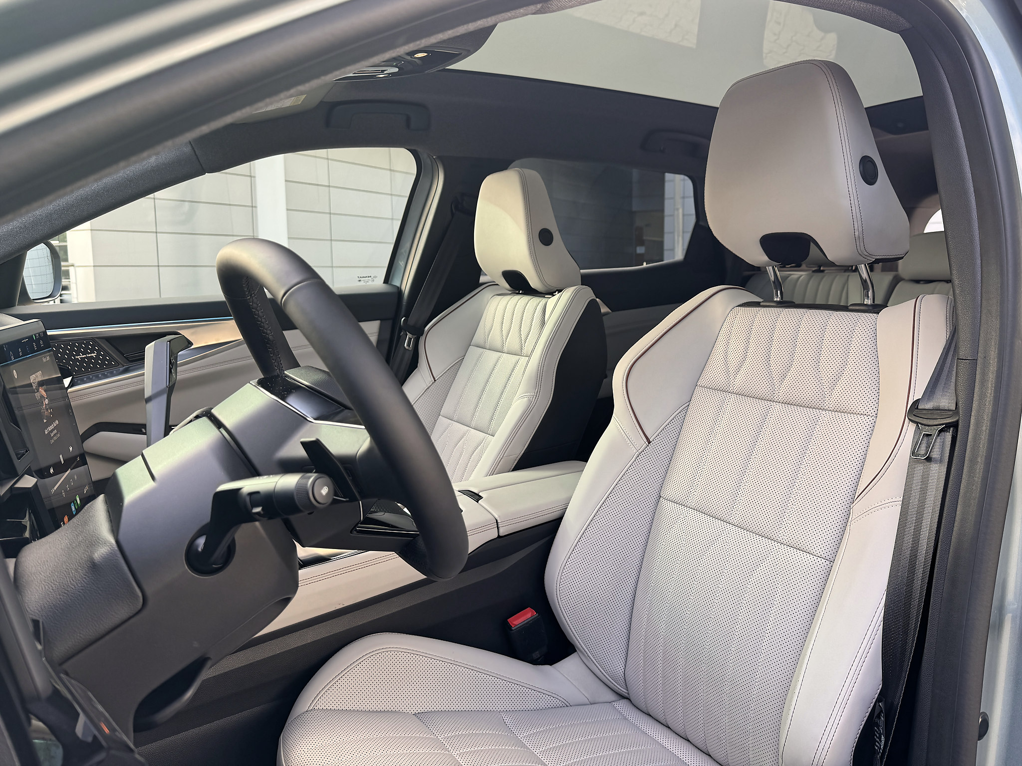 Por dentro são novidade elementos como o teto Solarbay, com opacidade variável, os bancos dianteiros, bem como o sistema de reconhecimento do condutor, o qual é capaz de ativar automaticamente o seu perfil pré-definido. O isolamento acústico foi também alvo de melhorias e este topo de gama Iconic, com acabamentos em madeira verdadeira, pode agora contar com estofos em Preto Titanium ou Cinzento Areia Claro, como este exemplar. O som de boas-vindas desenvolvido por Jean-Michel Jarre para a Renault chegou também ao Espace.