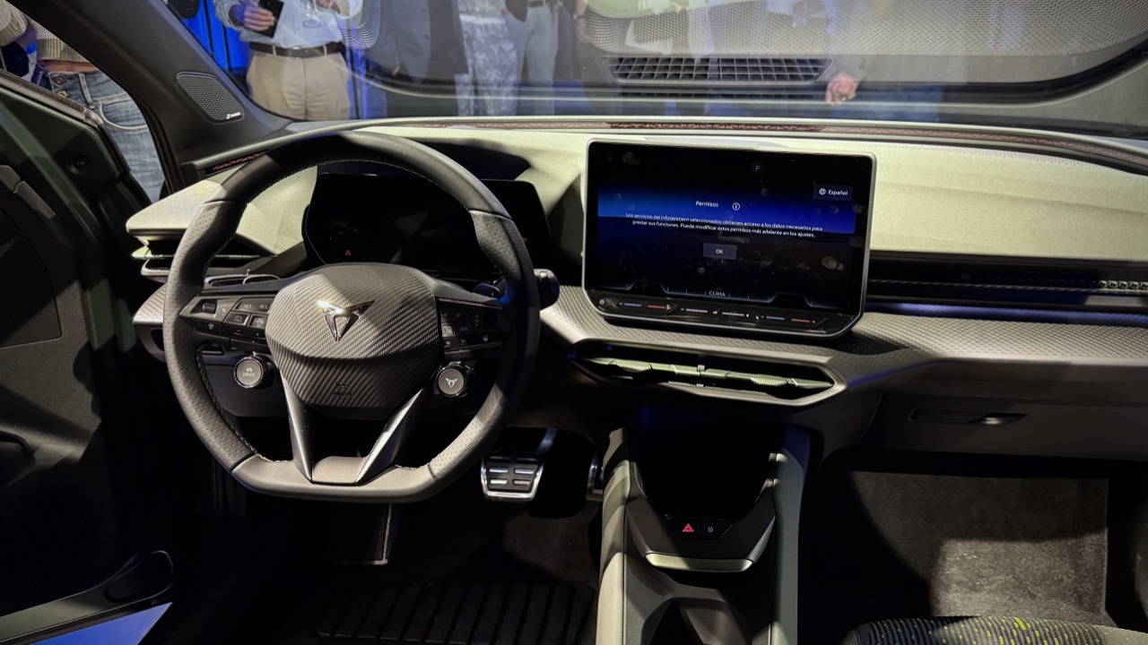 A posição de condução do Raval não engana. Volante desportivo com botões físicos (obrigado, Cupra), baquets bonitas e muito confortáveis e um ambiente, no geral, verdadeiramente envolvente colocam o condutor no centro das atenções. O painel de instrumentos digital tem 10,25 polegadas e conta com novos grafismos no universo Cupra, sendo obviamente complementado por um segundo display de 12,9 polegadas do sistema de infotainment, agora com base Android.